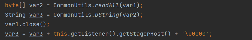 添加监听主机地址:在转换成字符串的var3后追加监听器的 stager 主机地址和一个空字符