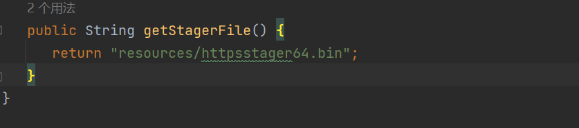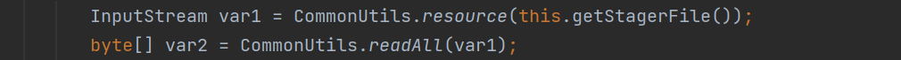资源加载(读取模板文件):使用CommonUtils.resource方法从指定文件路径中加载文件,这个路径是通过GenericHTTPStager.getStagerFile()方法获取的。这个资源的路径是“resources/httpsstager64.bin”。