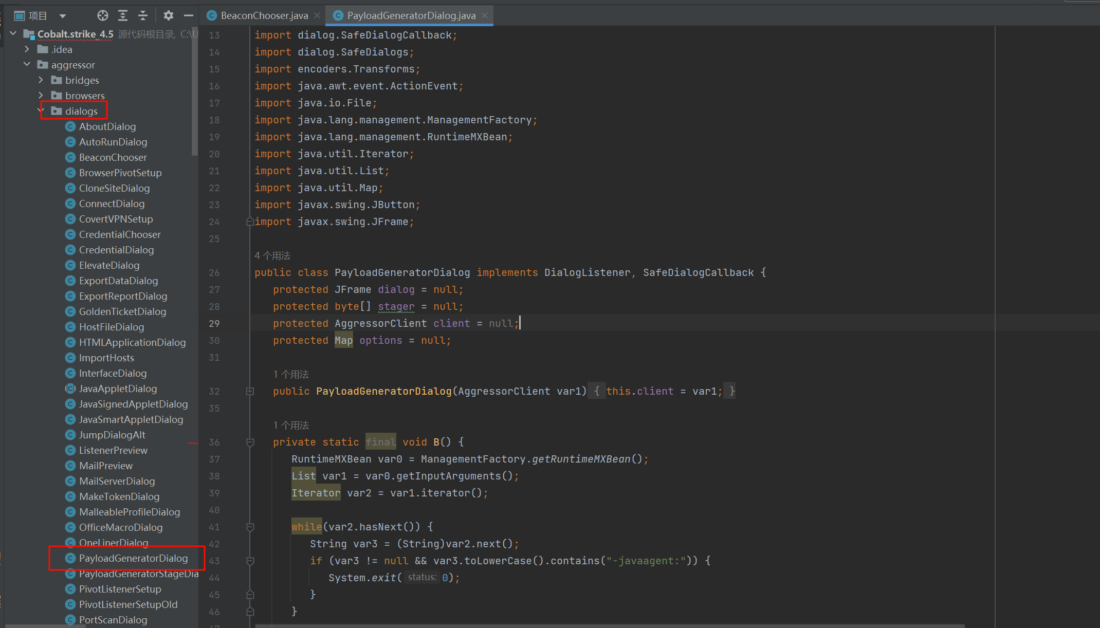 PayloadGeneratorDialog这个类在aggressor/dialog目录下