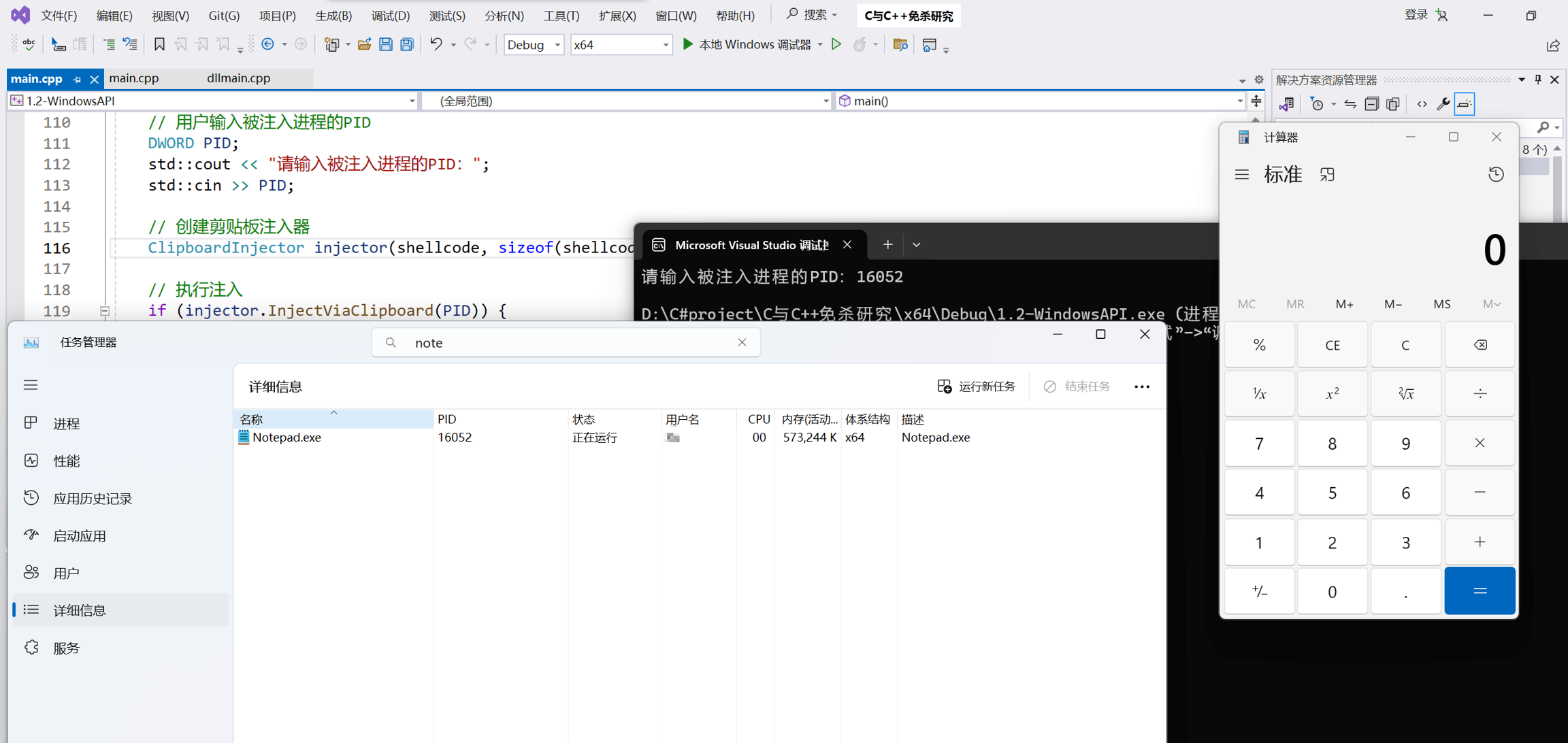 2.3 一个进程完成shellcode注入到另一个进程