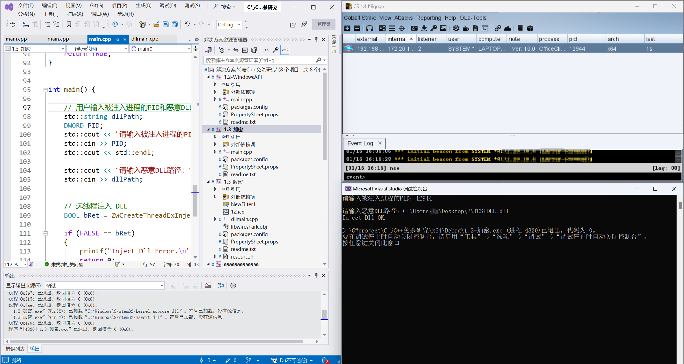 好处:通过 突破session 0远程线程注入,我们可以将shellcode/DLL注入到系统服务中,只要目标机器不关机,即使用户退出登录,也可以保持C2会话,达到了权限维持的目的。