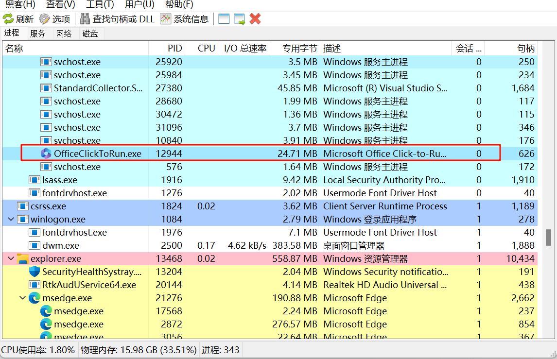 我选择注入到 OfficeClickToRun.exe,你也可以选择注入到任意一个svchost.exe里面,but,系统崩溃可别怪我。