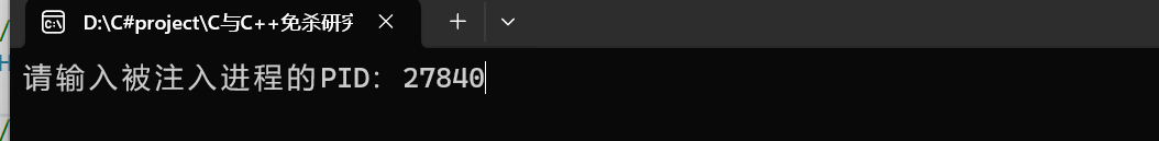 输入被注入进程的PID,比如下图的notepad.exe的PID是27840