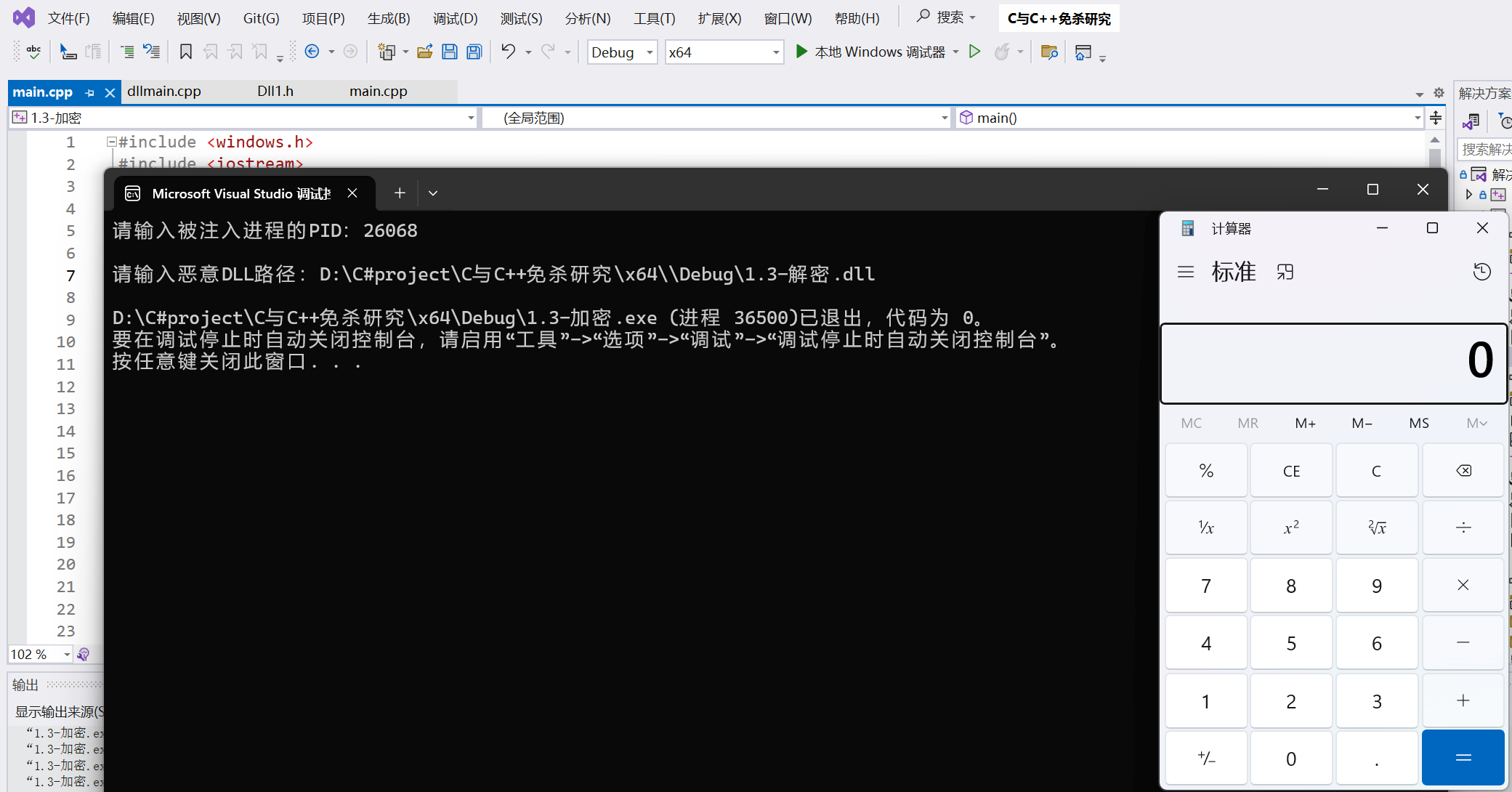 项目结构如下,我们只需修改dllmain.cpp即可