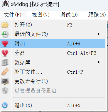 x64dbg附加进程