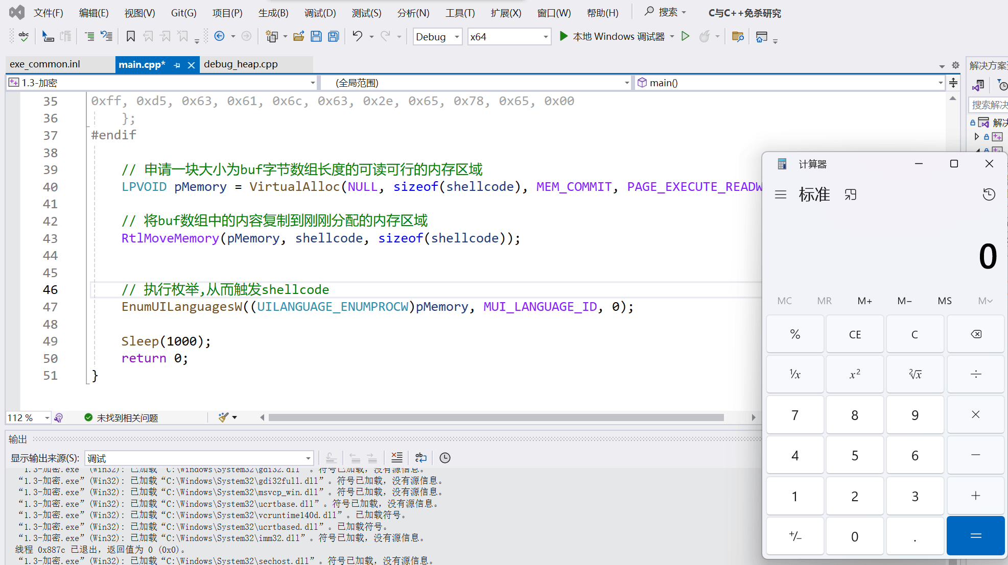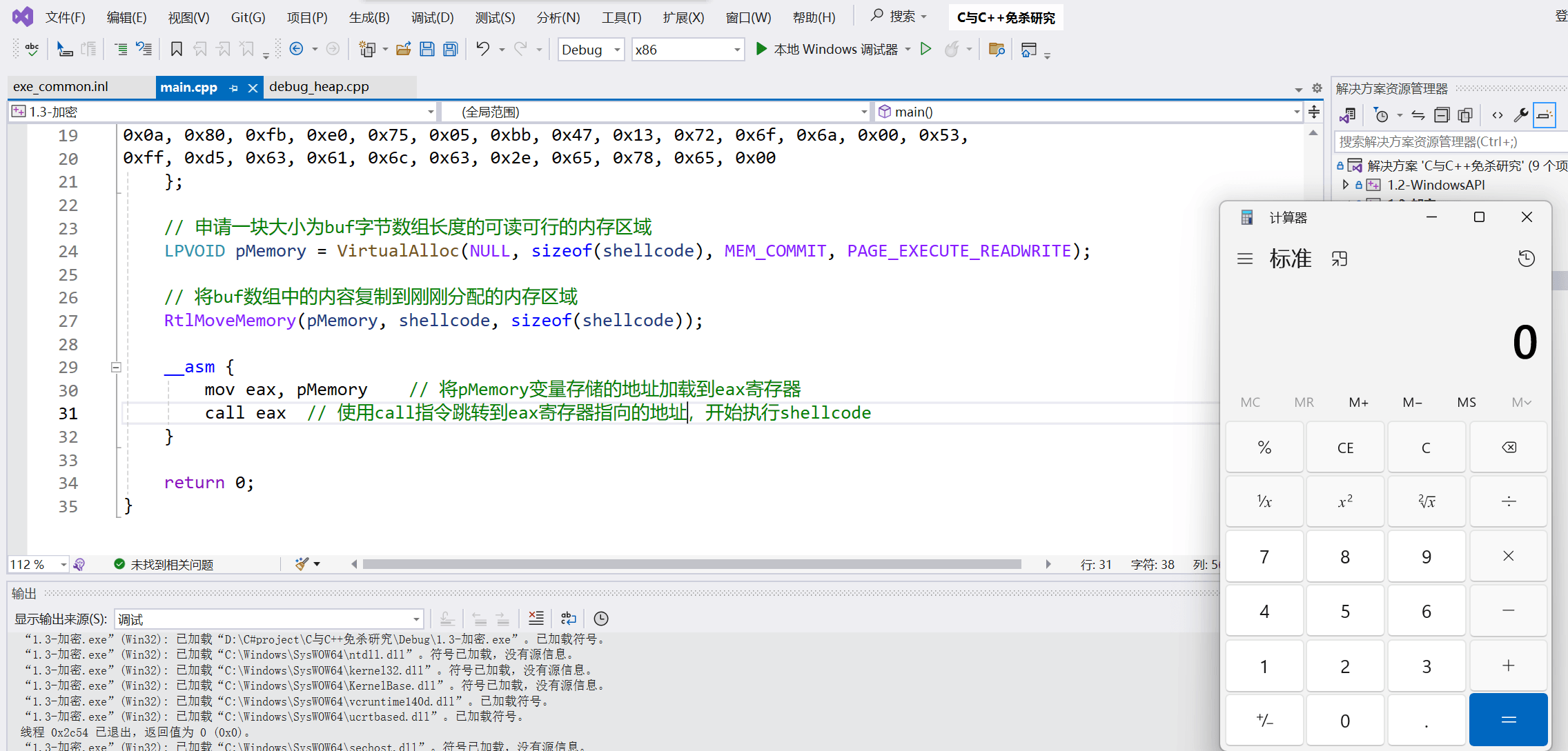 当然执行shellcode的手段应该不只这些,继续探究下去还有VEH异常机制执行shellcode,感兴趣的读者可以自行研究,其本质就是VEH机制为攻击者提供了一种在异常处理流程中执行任意代码的方法。通过注册处理函数、触发异常并修改执行上下文,攻击者可以绕过部分安全机制执行shellcode。