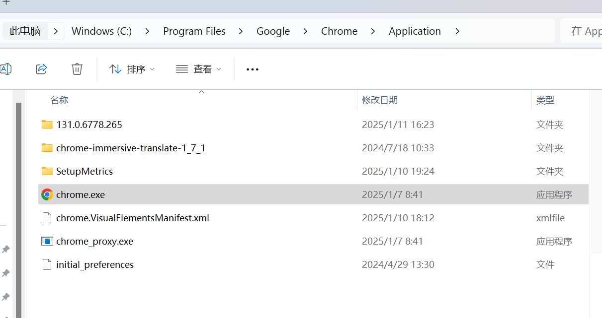 来到Chrome.exe真正的目录 C:\Program Files\Google\Chrome\Application