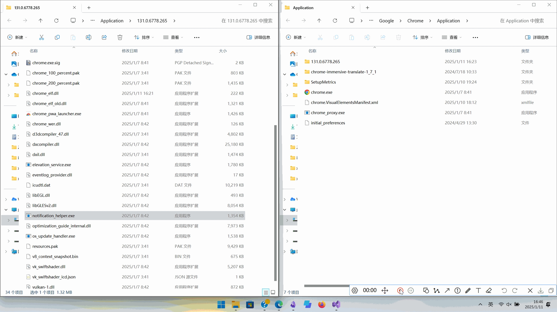 来到原始DLL的路径 C:\Program Files\Google\Chrome\Application\131.0.6778.265。路径不一定相同,可以使用IDA PRO、windbg、x32/64dbg等工具去看 Chrome 真正加载的dll。