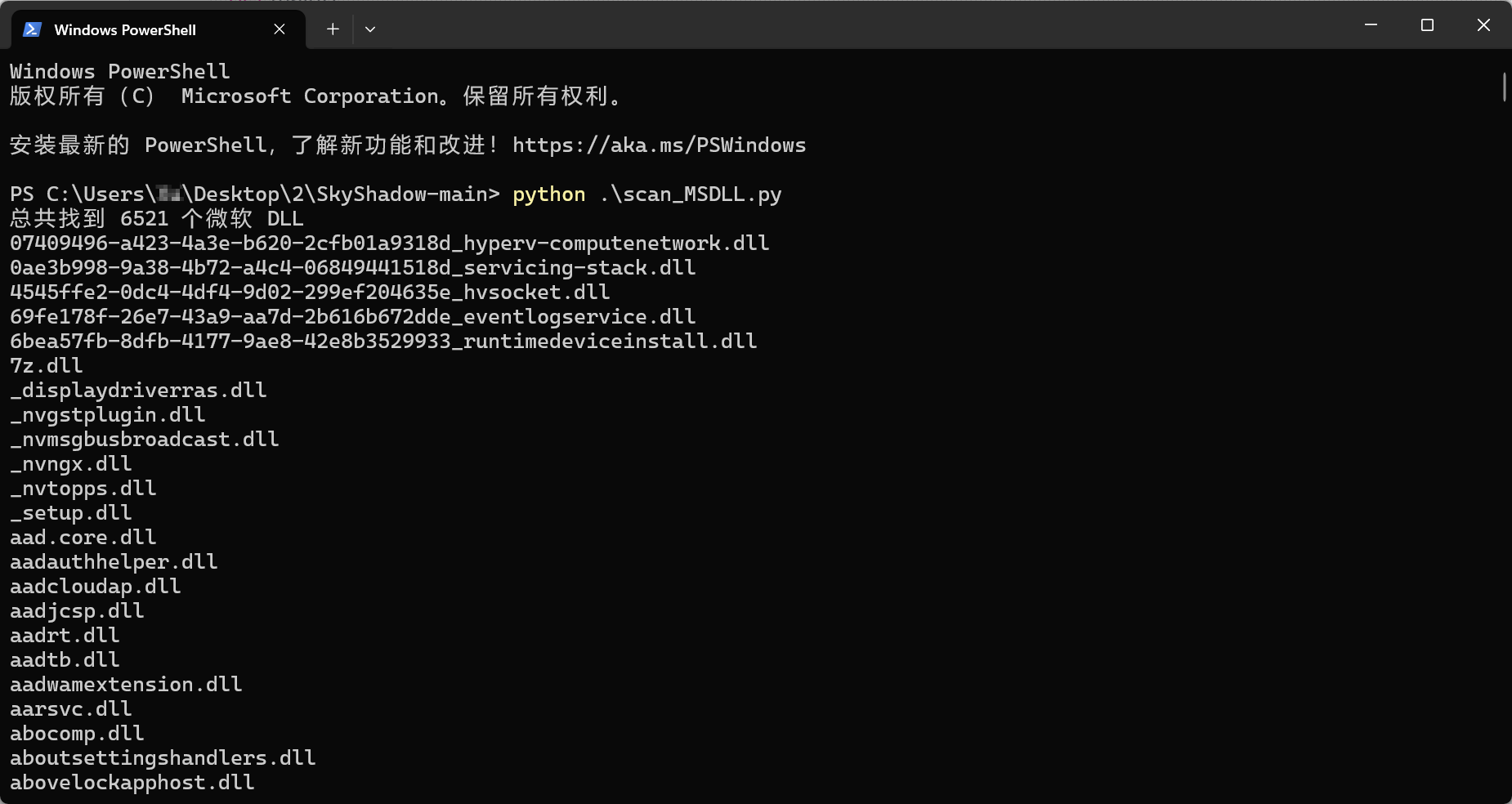 使用默认搜寻路径 python .\scan_MSDLL.py