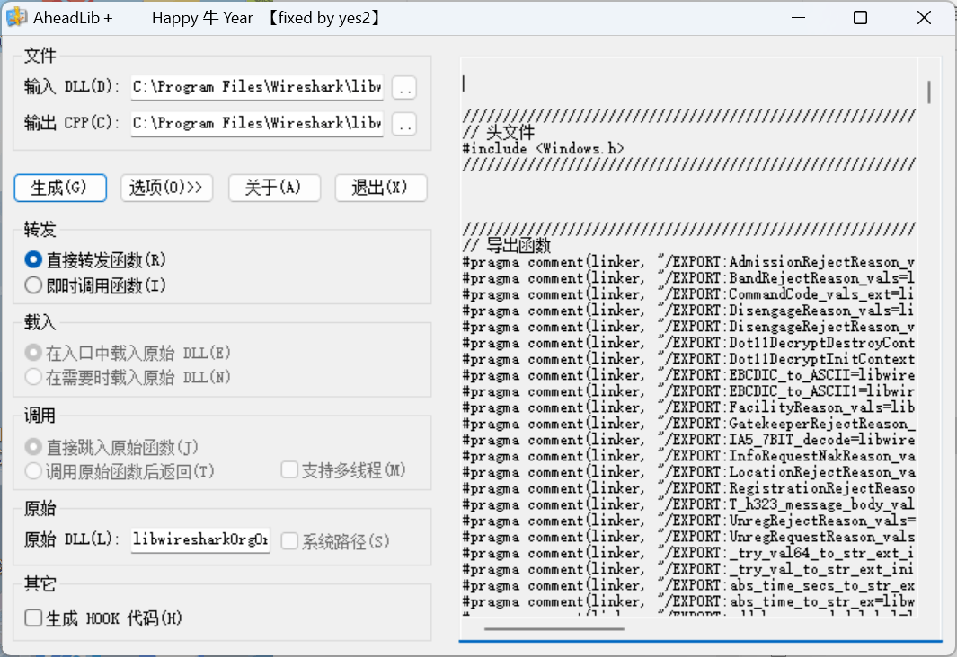 如果被劫持的DLL拥有多个导出函数,则我们就需要全部转发,那么怎么批量生成转发函数表呢?可以使用 AheadLib 工具:[下载] AheadLib修改 支持x64支持类/命名空间-编程技术-看雪-安全社区|安全招聘|kanxue.com
