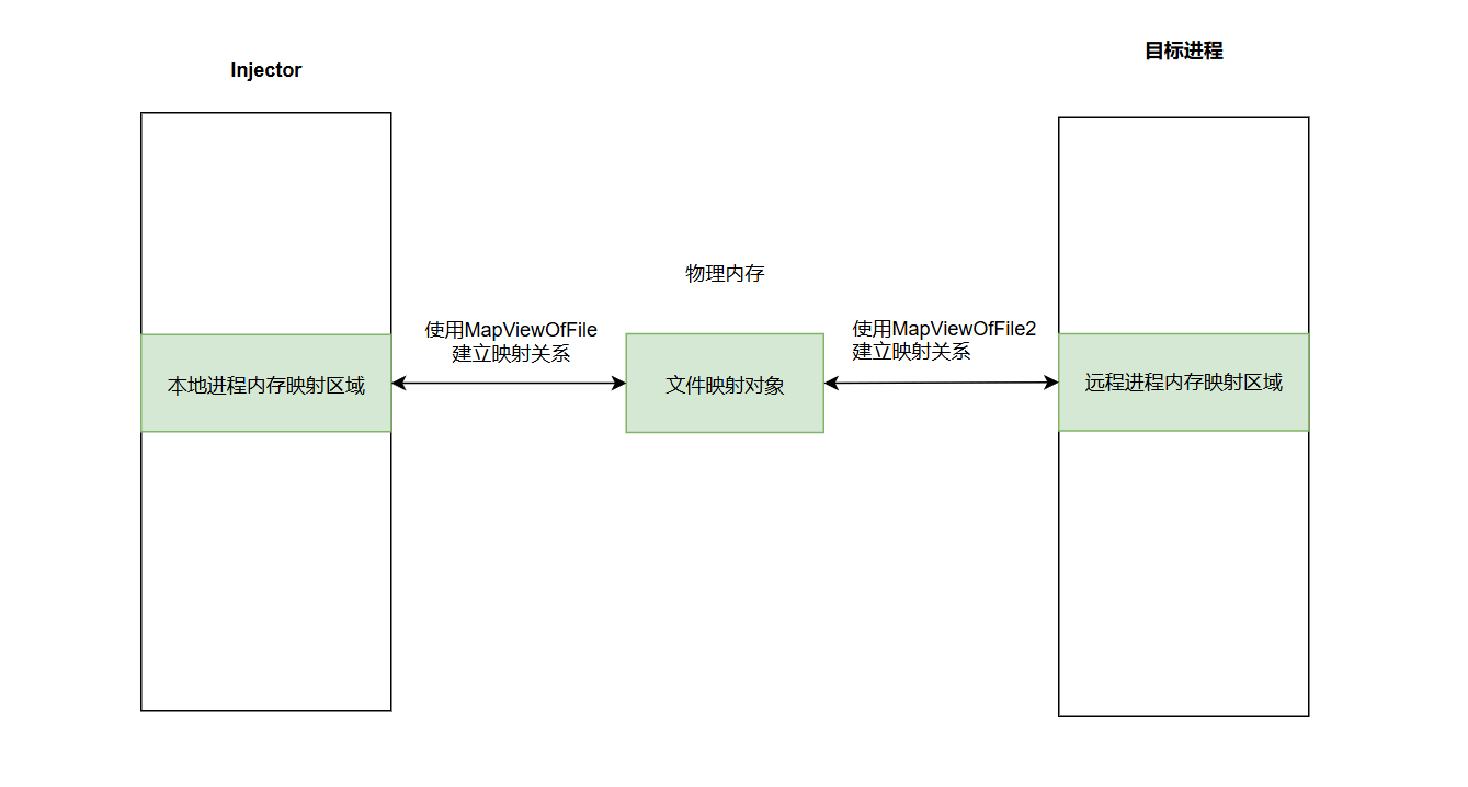 映射注入是一种内存注入技术,可以避免使用一些经典注入技术使用的API,如VirtualAllocEx,VirtualProtect、WriteProcessMemory等被AV/EDR严密监控的API,同时创建文件映射对象的本质上是申请一块物理内存区域,而申请的物理内存又能比较方便的通过系统函数直接映射到进程的虚拟内存里,这也就避免使用经典写入函数,增加了隐蔽性。