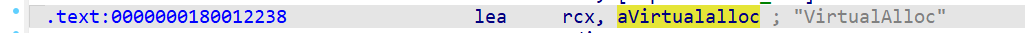 而 CHAR VirtualAlloc[] = "VirtualAlloc"; 这样存放的