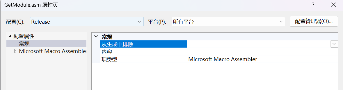 在项目中添加*.asm后缀的文件,对刚刚添加的asm文件,点击属性,看项类型是不是 Microsoft Macro Assembler