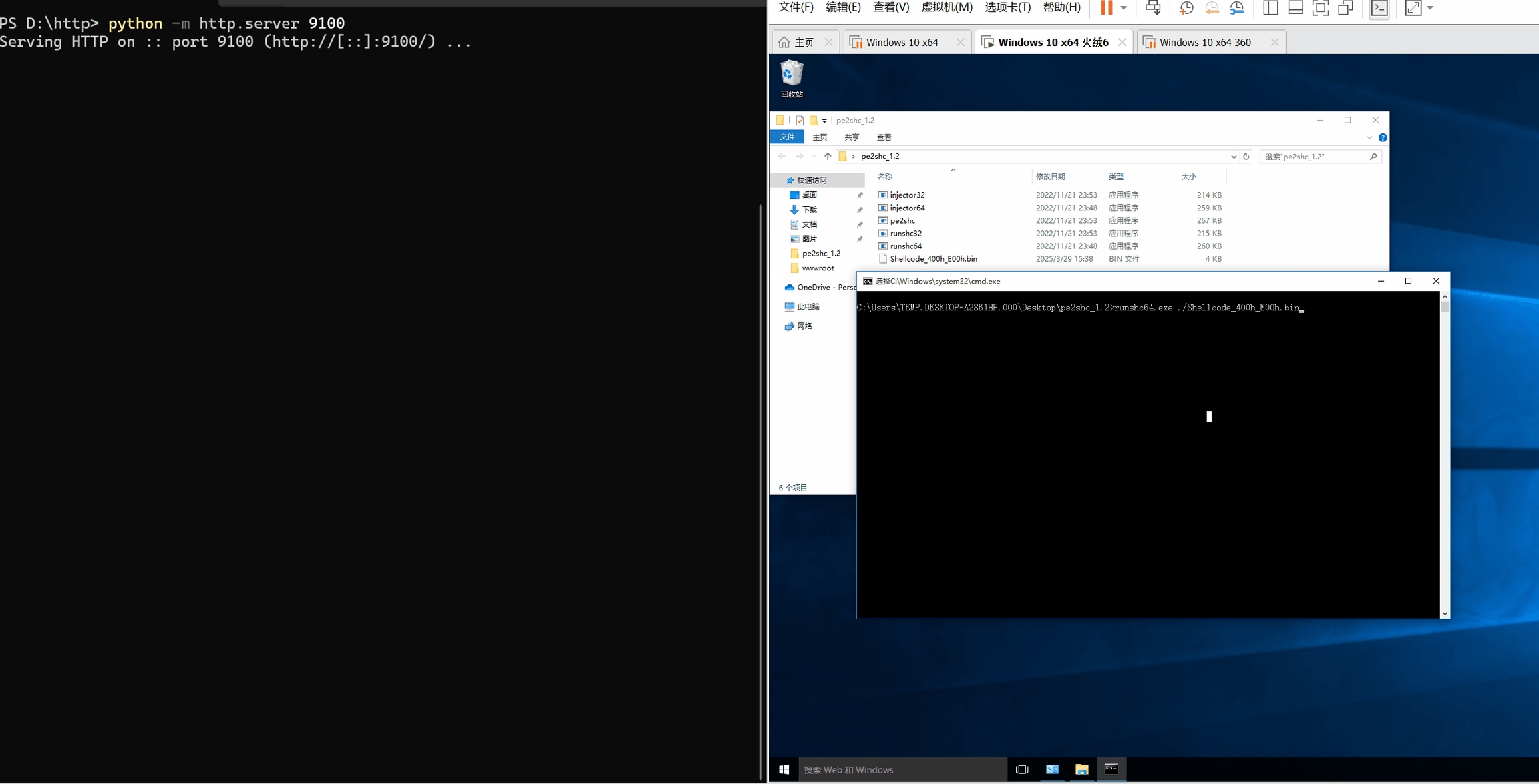 想要加载这个文件,我们可以使用 hasherezade/pe_to_shellcode: Converts PE into a shellcode 中的runshec工具