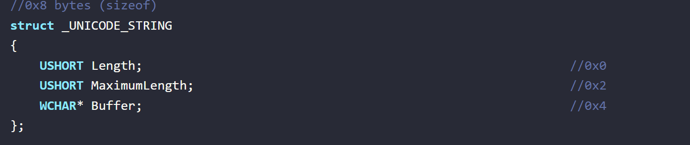 ⚠注意:在Stephen Fewer的代码中获取长度是用偏移0x26来获取的,其实两种方式都可以,用MaximumLength,以为着它将字符串末尾的多个 00 也算进去了,这会导致多执行几轮计算hash的步骤,导致hash值与用偏移0x24计算的hash值的不一样。