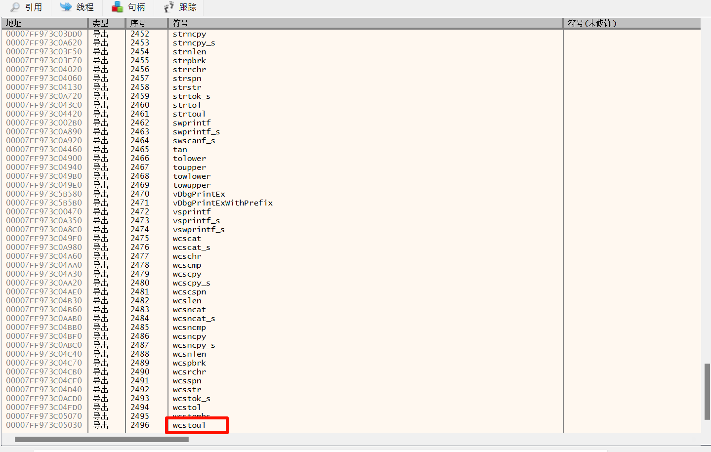 为什么按名称导出的函数数量为0呢?因为我现在看的是第一个模块(本进程),而第一个模块是没有导出函数的