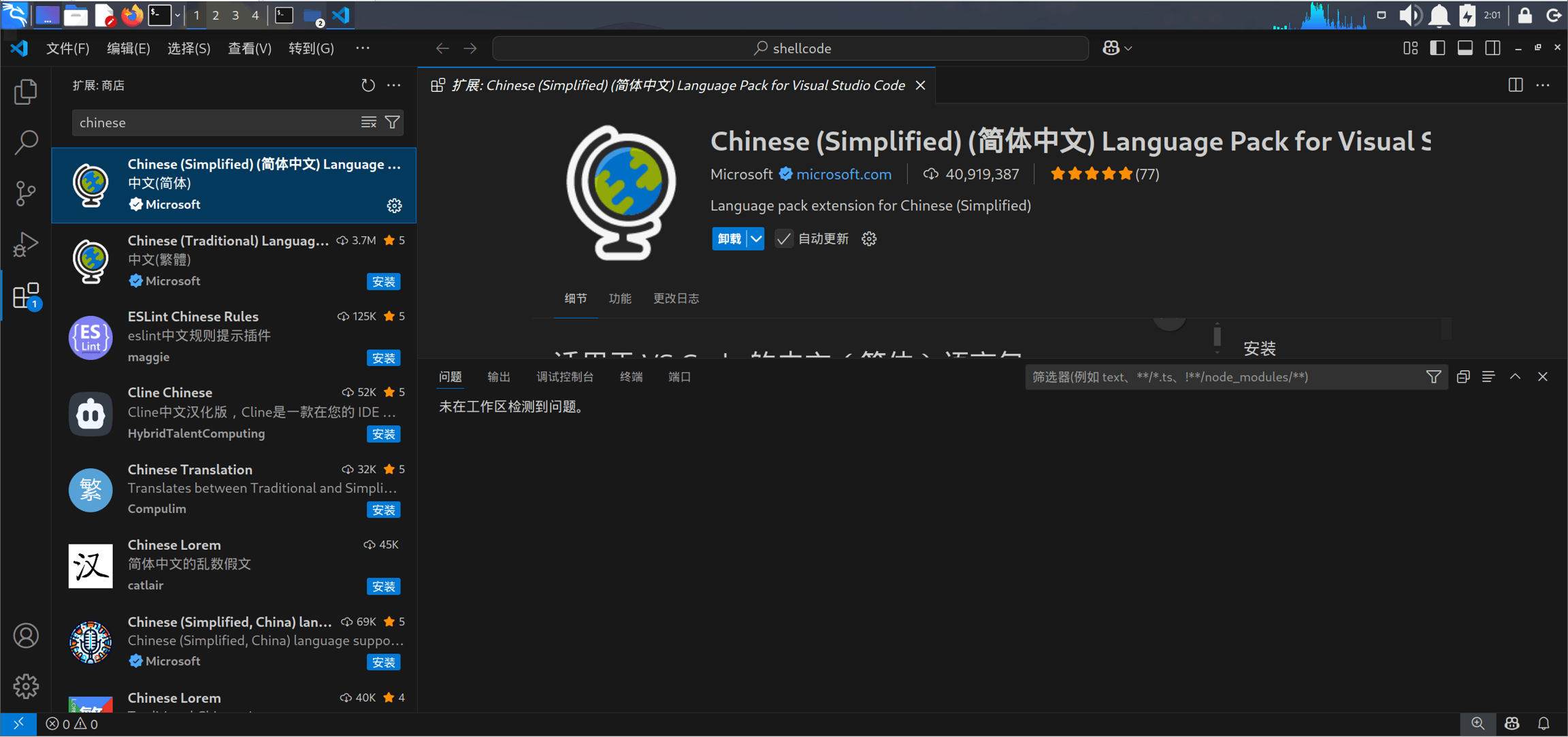 然后呢,我再安装中文插件,虽然能看懂英文,但毕竟不是母语,老是需要在脑中翻译成中文太累了。