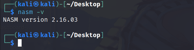kali也默认安装了nasm,用命令查看一下:nasm -v