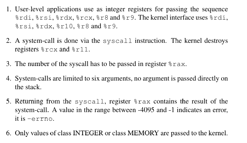 rax中。syscall指令会覆盖rcx,因此不能直接用rcx传参,而应该使用R10来替代RCX。因为我们使用的是