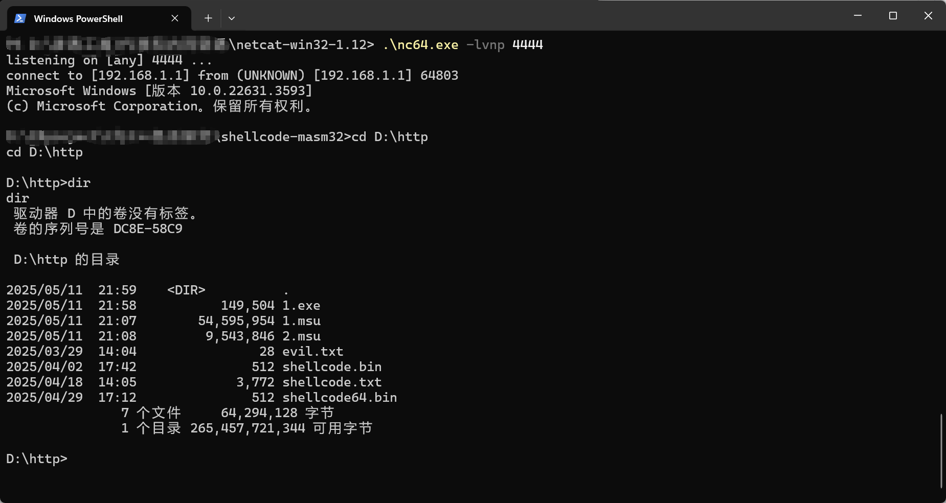在网络安全探索之旅中,我偶然萌生了用汇编实现 Windows 反弹 shell 的想法,实在不想单开一篇文章,就在这里写了。反弹 shell 是一种网络攻防技术,攻击者借助此技术可在目标计算机上获取远程命令行访问权限。常见实现多基于 PowerShell,但汇编语言能深入底层,实现更隐蔽、高效的控制,刚好我这个专题或多或是涉及到汇编语言编写工具,所以Reverse Shell Shellcode孕育而生。