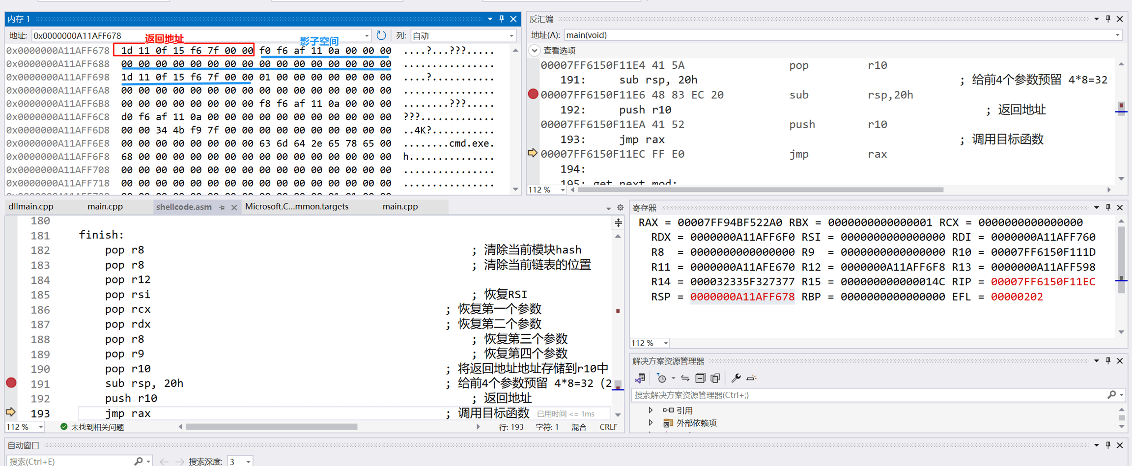 所以,这也是为什么windows x64 shellcode编写如此困难的原因,因为我们要时刻关注RSP对齐!