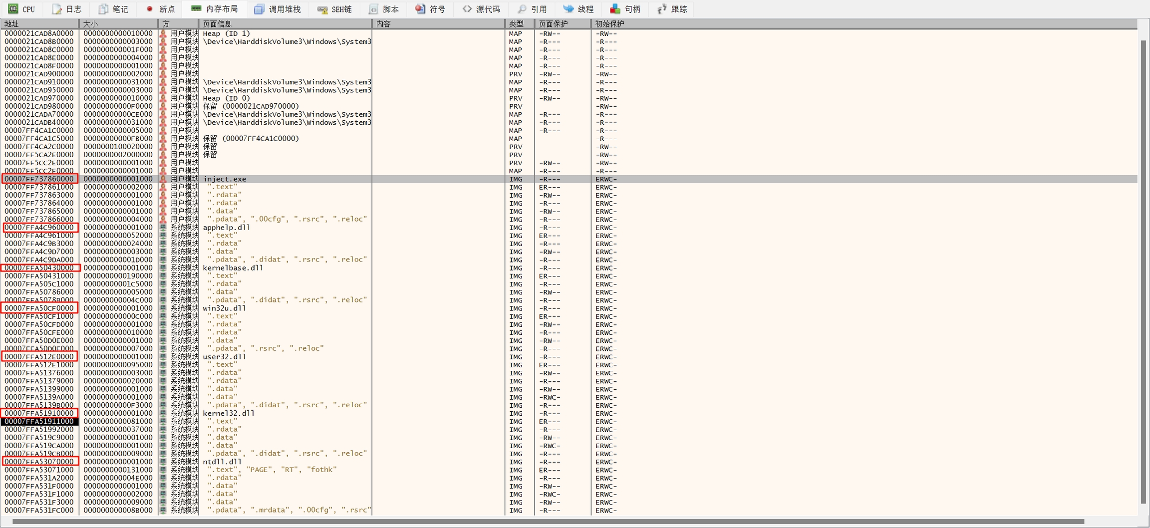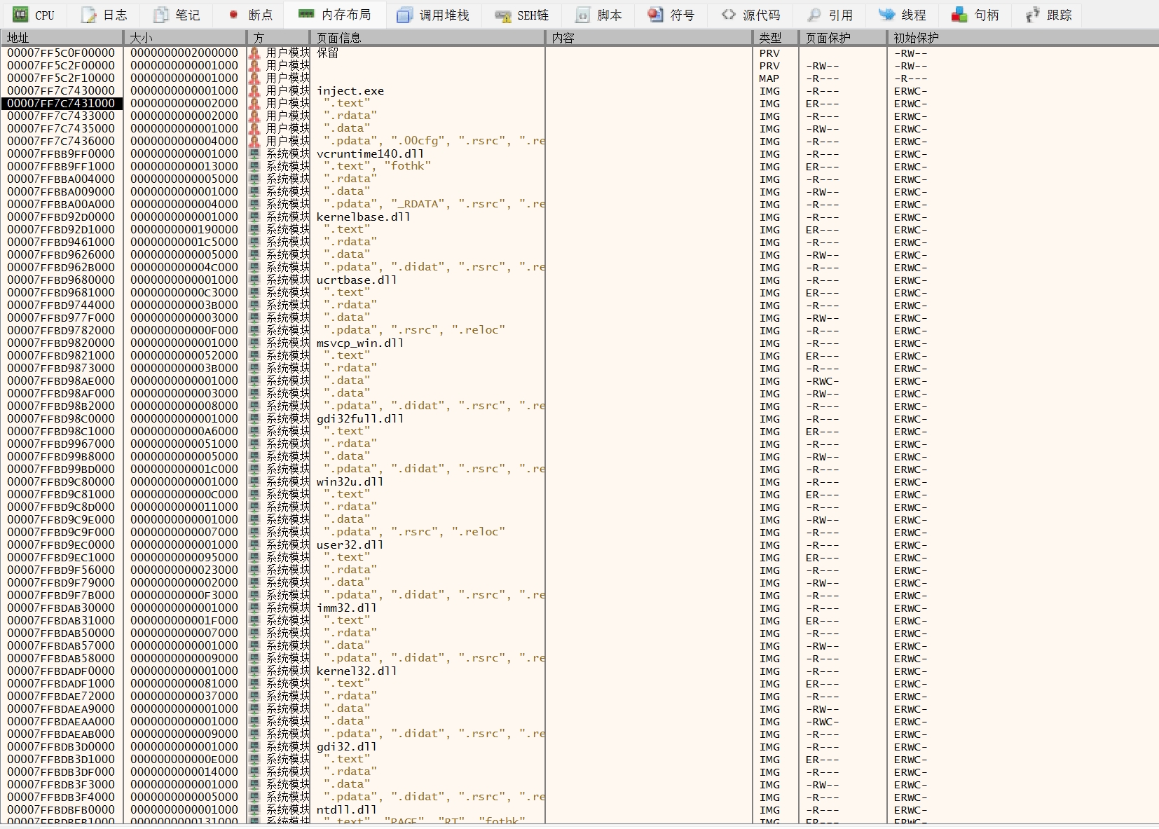 查看内存布局时发现,可能是该区域的页面信息位"保留",所以我看不了栈上内容?也可能是我调式水平低下的原因。