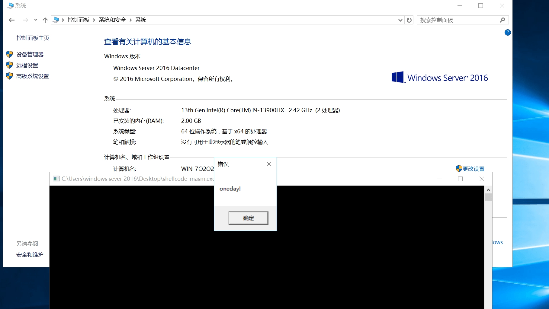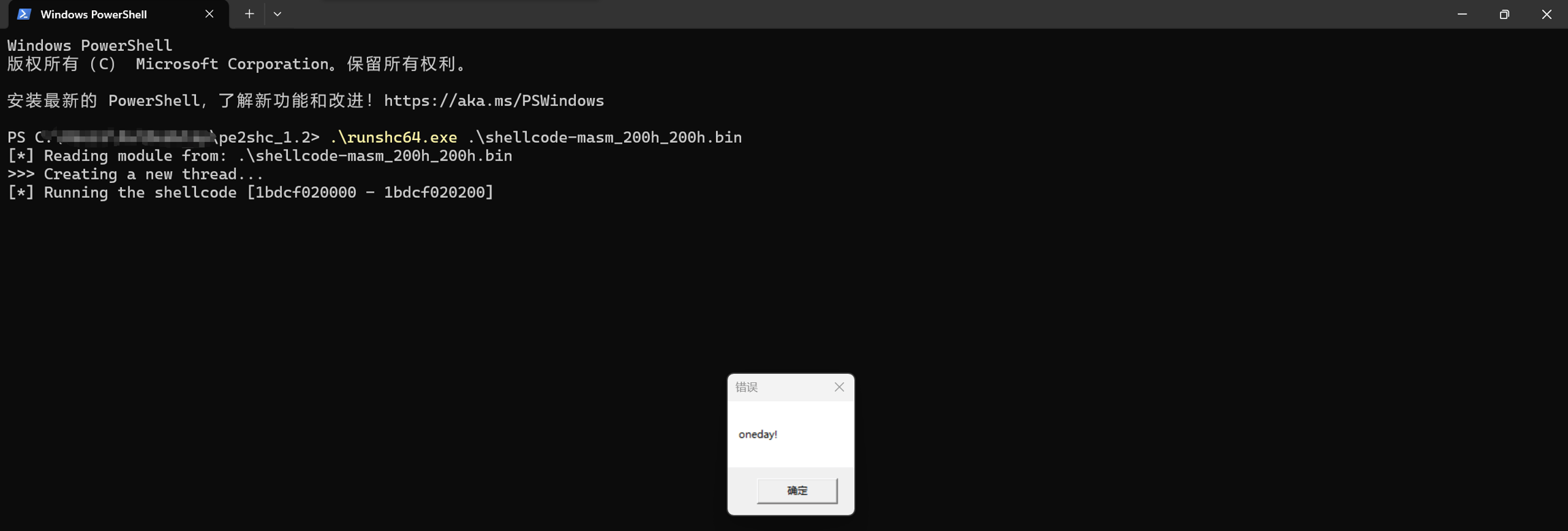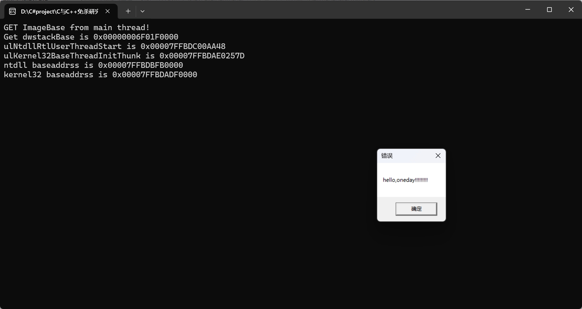 既然来到了用户自定义入口点,说明我们的线程启动流程已经结束了,后续的调用链就可以不用看了,直接F5运行。因为我调式的程序是一个弹窗程序,程序运行后会弹出一个对话框