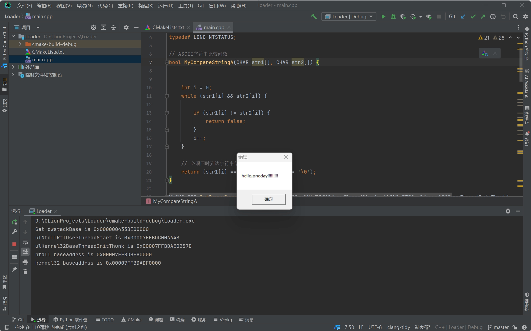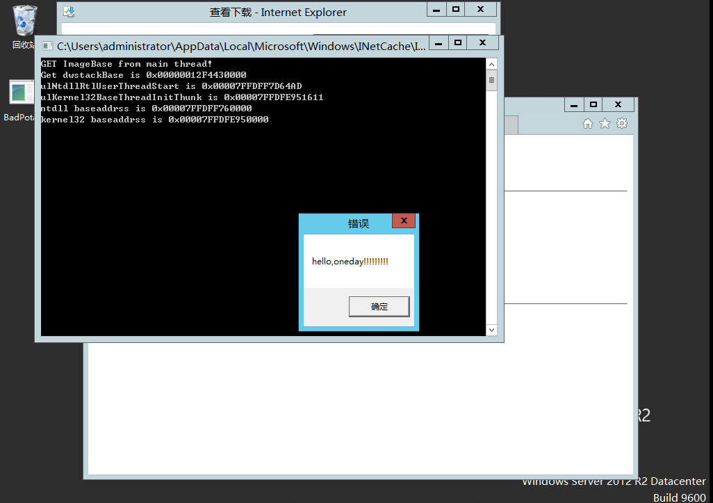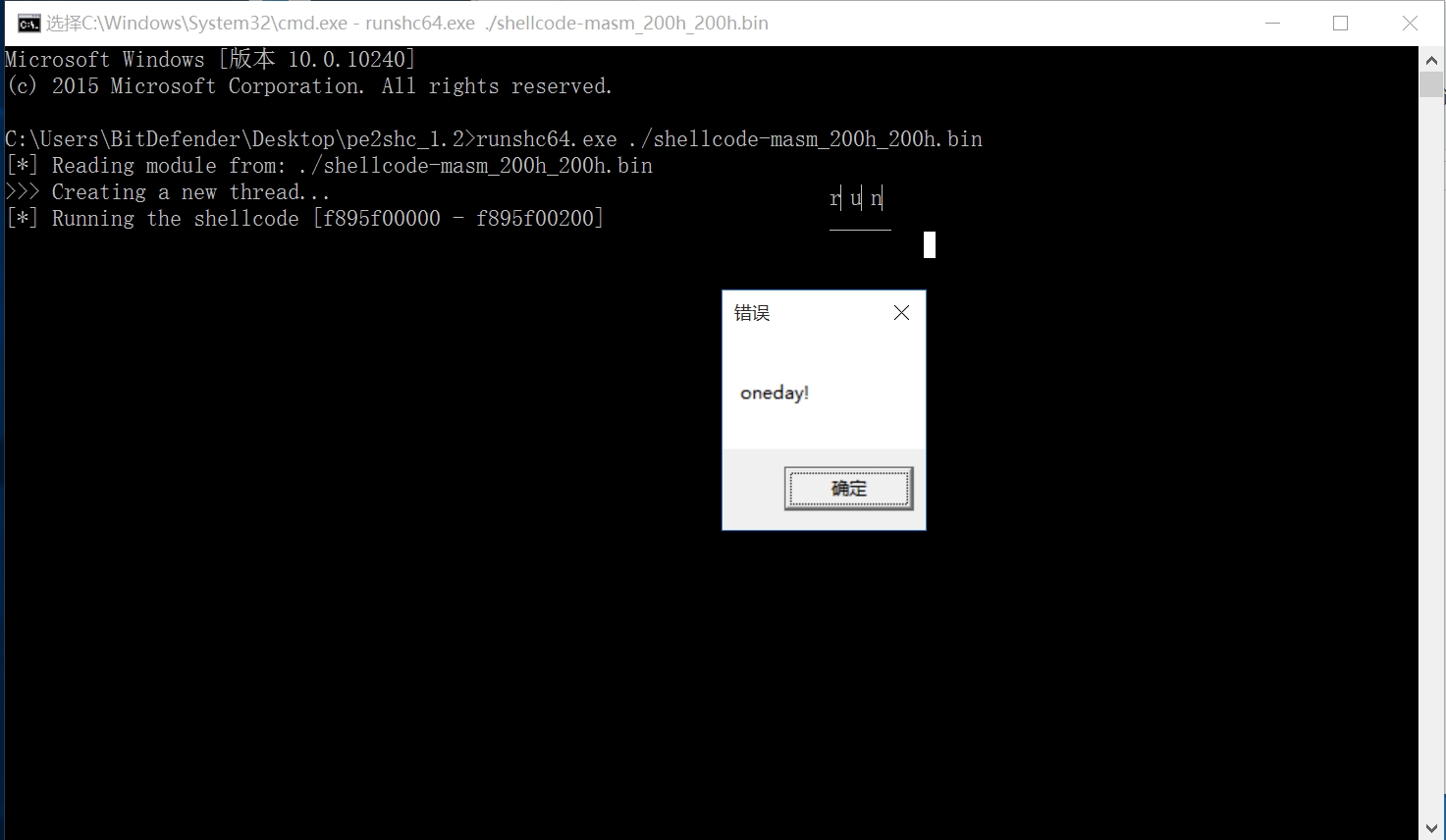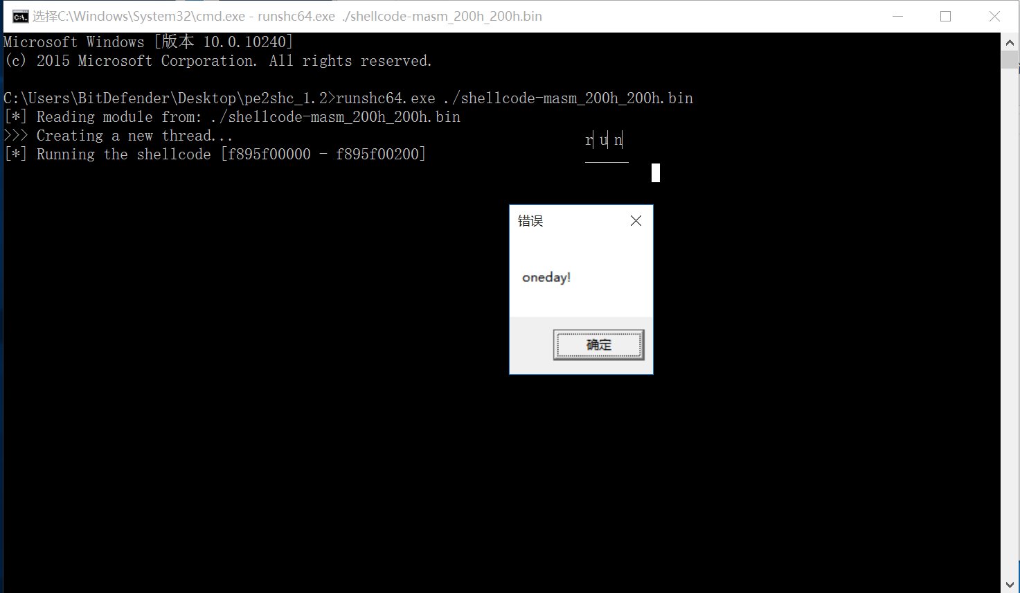 既然来到了用户自定义入口点,说明我们的线程启动流程已经结束了,后续的调用链就可以不用看了,直接F5运行。因为我调式的程序是一个弹窗程序,程序运行后会弹出一个对话框