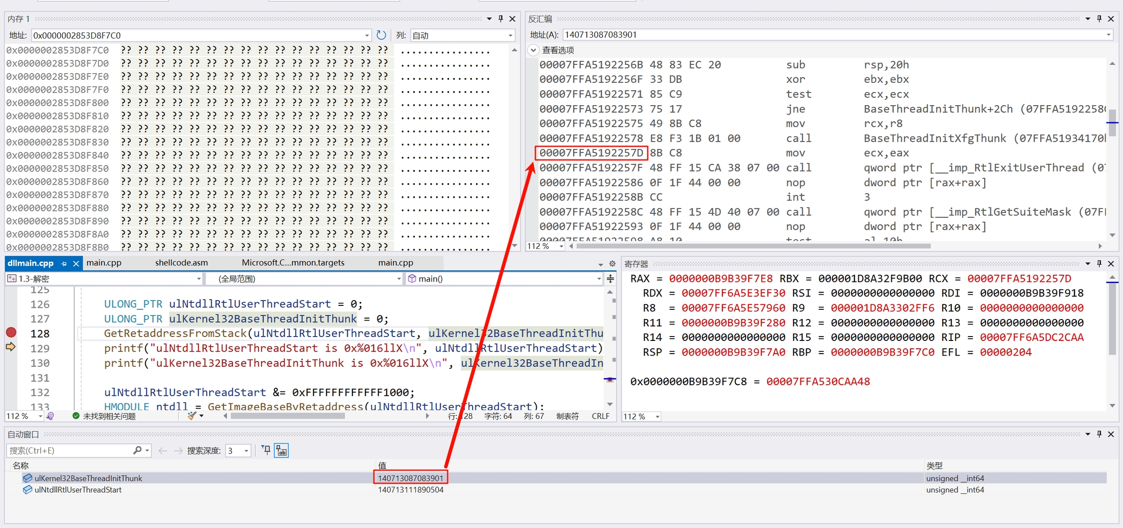 // ulNtdllRtlUserThreadStart [out] - 用于返回 ntdll!RtlUserThreadStart 的地址