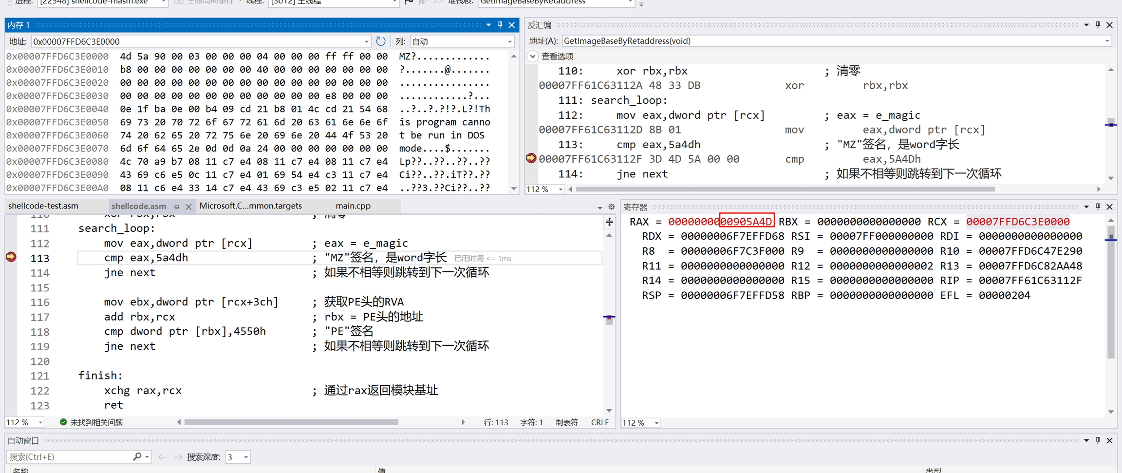 最终我优化了shellcode,将调用API的逻辑放到了 GetApiAddressByHash 中,模块基址存入非易失性寄存器r15中作为输入参数,最终版的 GetApiAddressByHash 其基本的使用模板如下