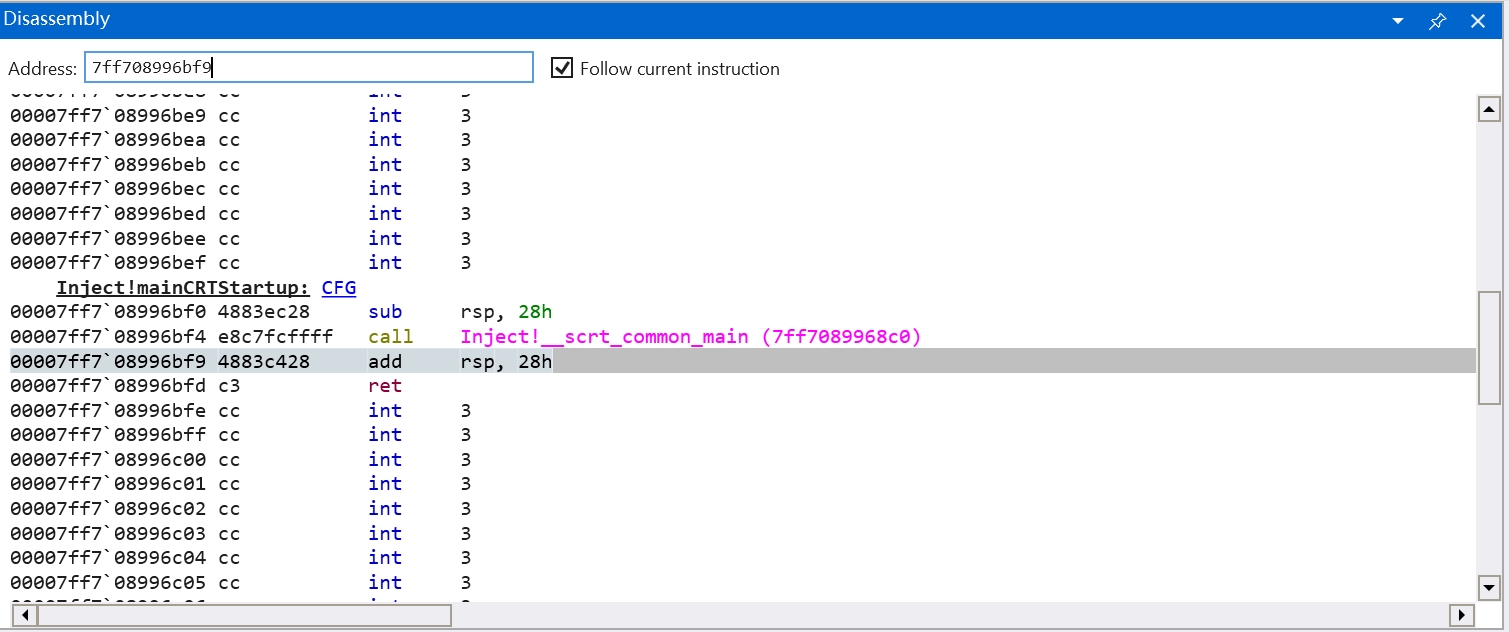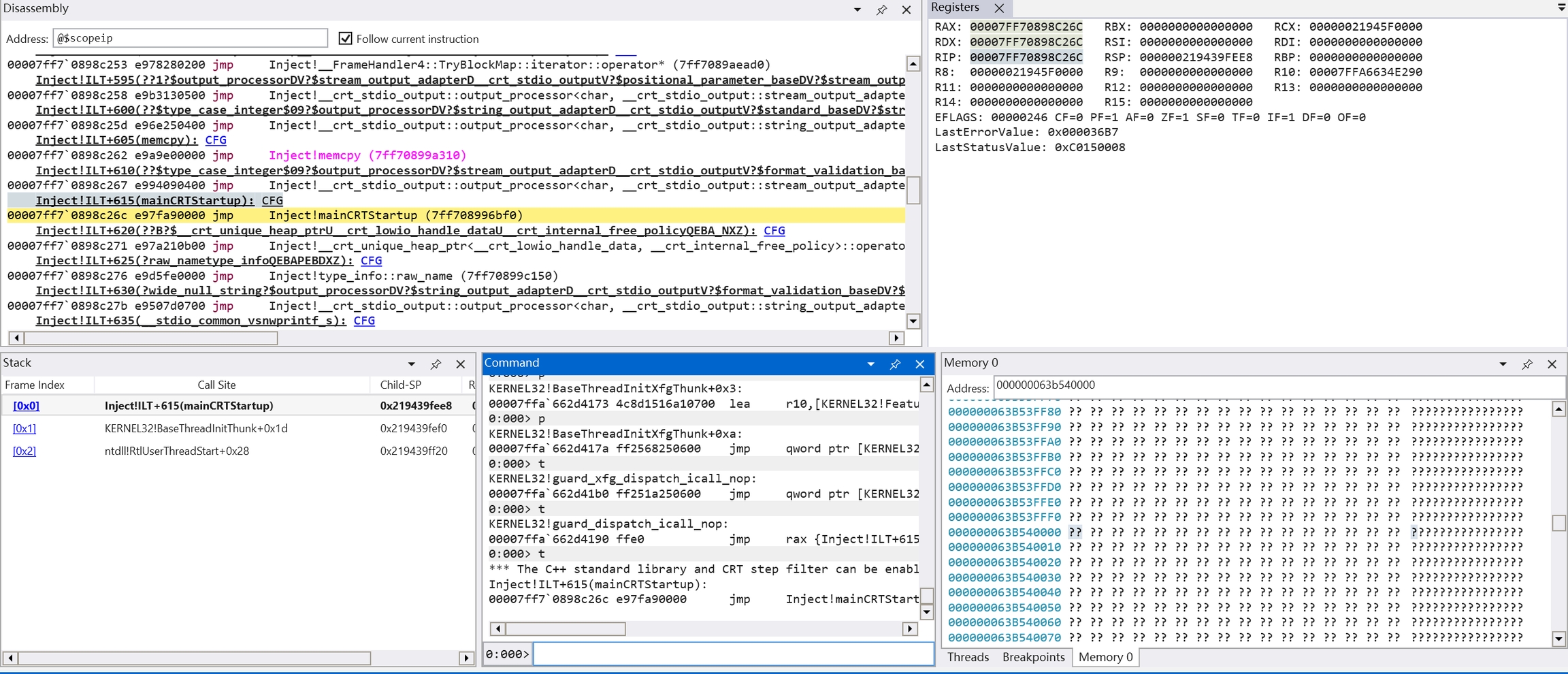 接下来就是连续的调用两次 ntdll!guard_xfg_dispatch_icall_nop,最终来到用户自定义入口点(mainCRTStartup)