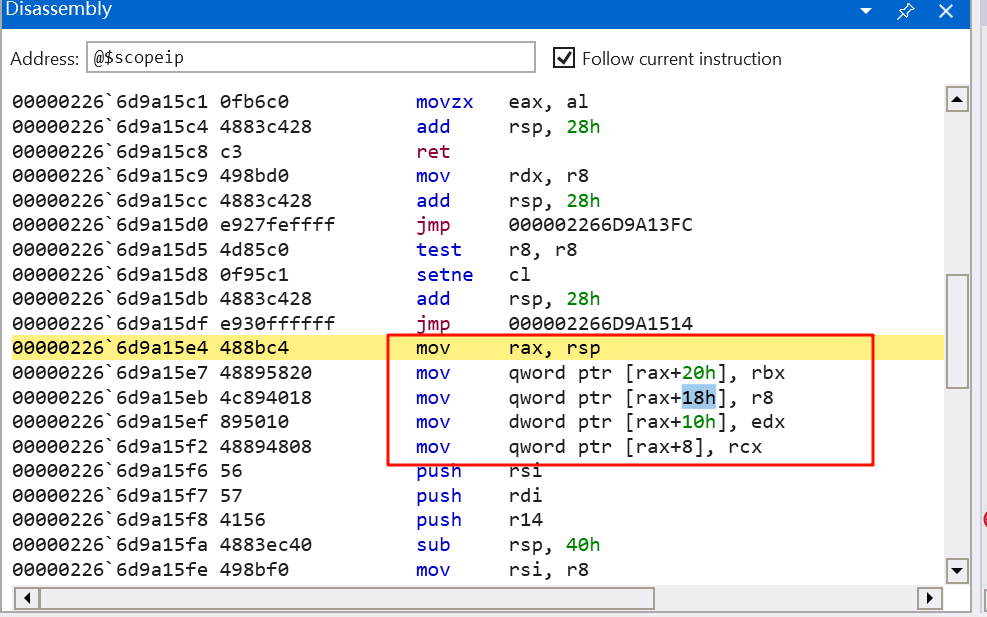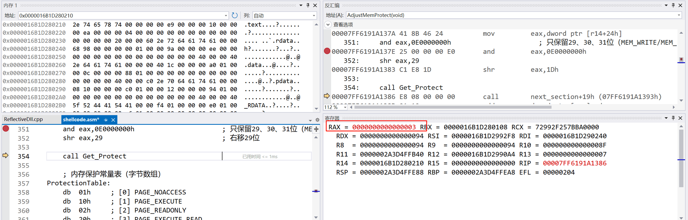 SizeOfImage的值来分配一个RWX权限的内存,按照x64 调用约定,API前4个参数(从左至右)分别存储在rcx、rdx、r8、r9。每次调用