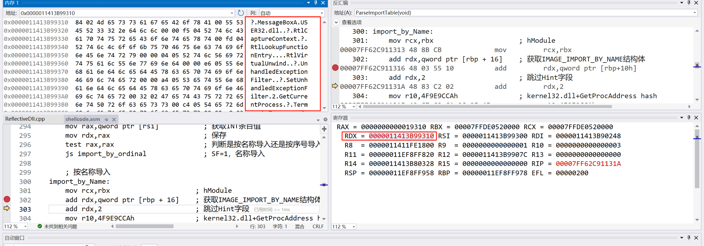 修复导入表:遍历导入表,找到目标函数名,然后将其函数地址填入到IAT表中