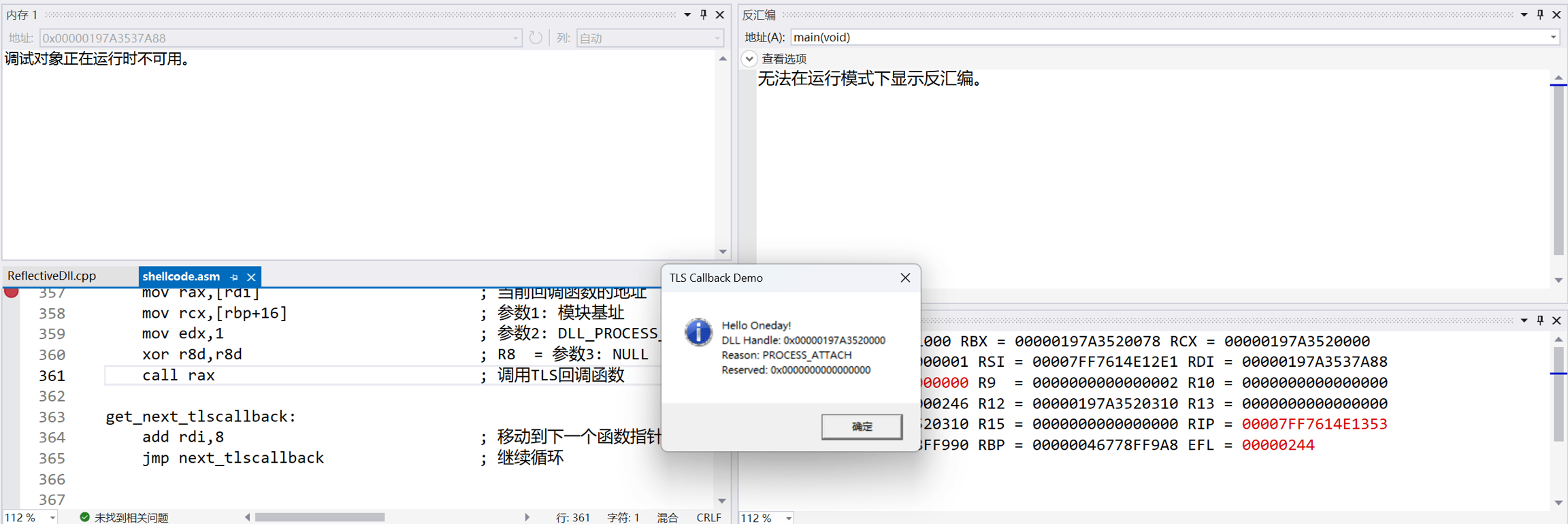 SectionHeader->Characteristics字段调整各节的内存保护属性。执行TLS回调(可选):TLS(Thread Local Storage)回调是PE文件加载过程中一个容易被忽视但至关重要的环节,TLS 回调函数会在 DLL 加载(