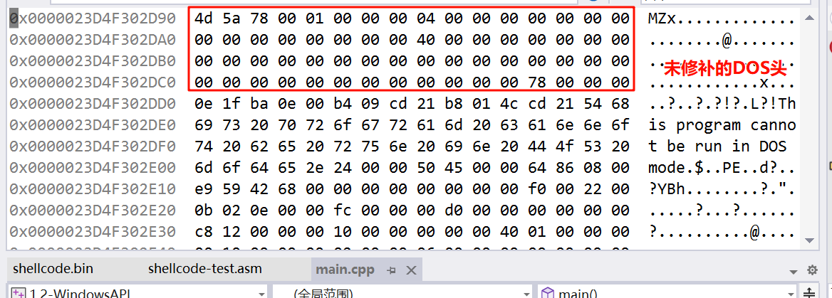 故这里介绍 加载PE文件到内存 的汇编实现,因为复制PE头到新内存和将各节展开到内存都需要用到旧DOS头(基址)和旧NT头,而旧NT头可以通过旧DOS头推到出来,所以在代码中,我做了如下约定