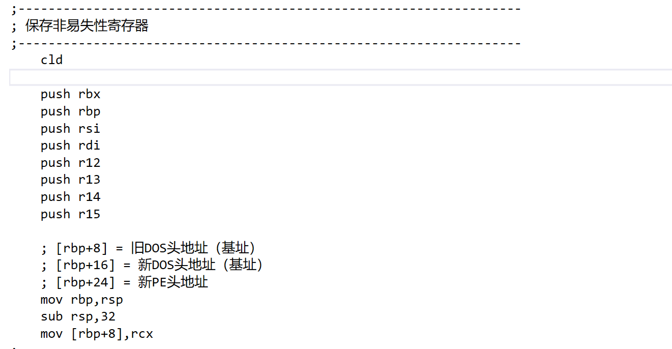 重定向NT头地址,新NT地址存储在 [rbp+24],后续的各种操作都需要用到新NT头,所以我们提前存储,以备后续使用。