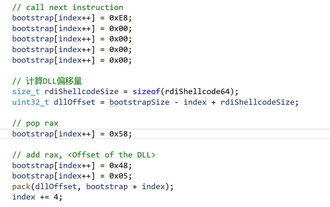 这个SRDI可以将其置于待加载PE文件的头部或者尾部,与PE文件形成一个整体,这样PE文件自己就携带了一个加载器,从而实现了PE2Shellcode的功能。