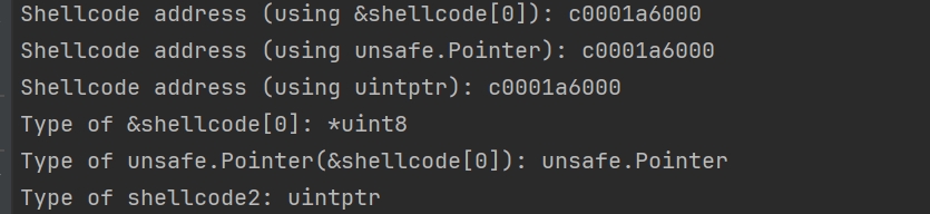 fmt.Printf("Shellcode address (using unsafe.Pointer): %x\n", unsafe.Pointer(&shellcode[0]))